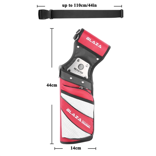 The Bicaster Archery Quiver Blaza provides ample storage and easy access to arrows, designed with durable high-quality fabric suitable for archers of all levels. Multiple compartments allow for efficient accessory organization, and the adjustable belt ensures a comfortable fit. A stainless steel paddle prevents arrow penetration, enhancing durability.